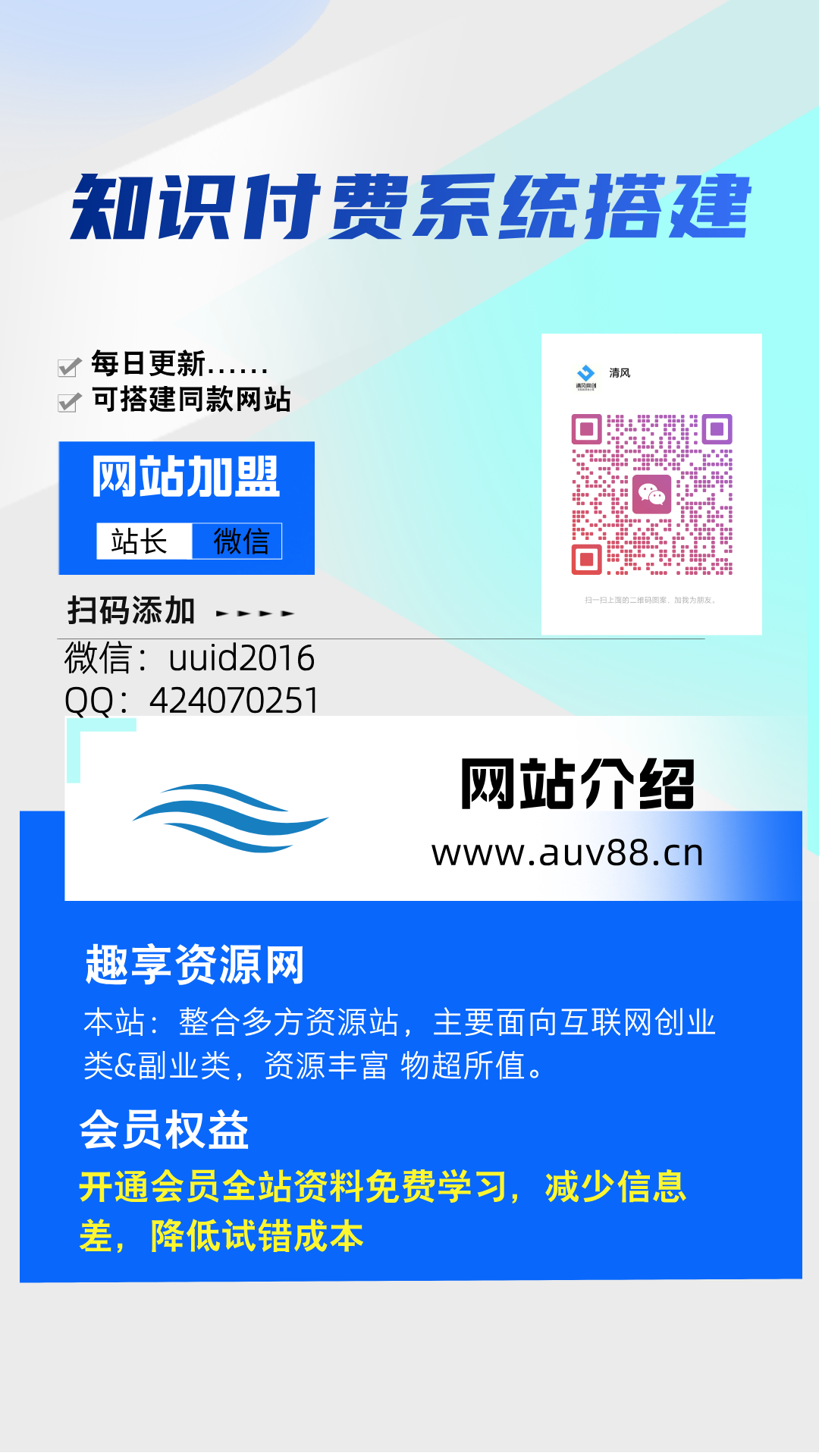 加盟XXX网创,加盟搭建同款知识付费资源网站,实现长期稳定被动收入~